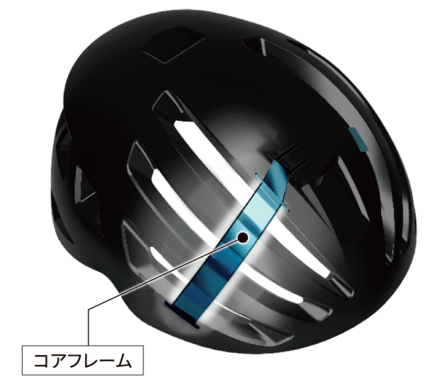 ヘルメットに独自の「コアフレーム構造」を搭載し、耐久性を向上。前面に大きく空いた革新的な通気孔デザインを可能にし、大幅な軽量化と高い安全性を実現しました。