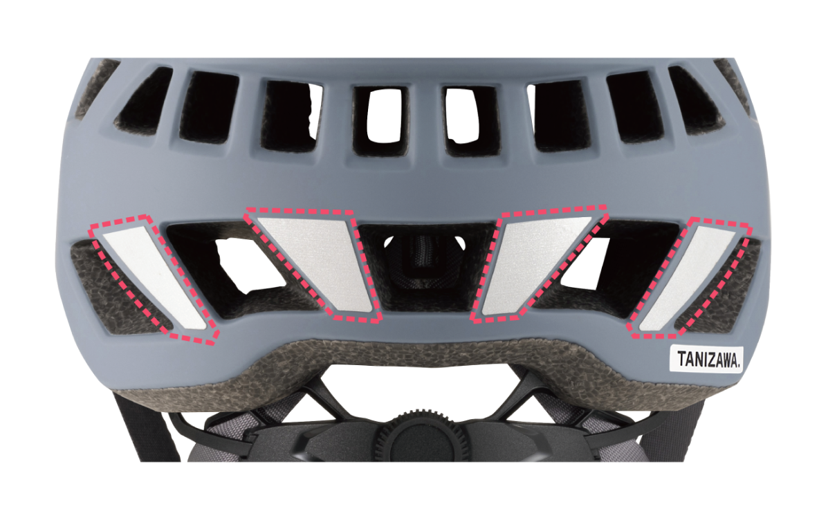 広角度に光を反射するシールを4箇所に貼り付け。夜間・荒天時に、後方からの視認性を高めます。